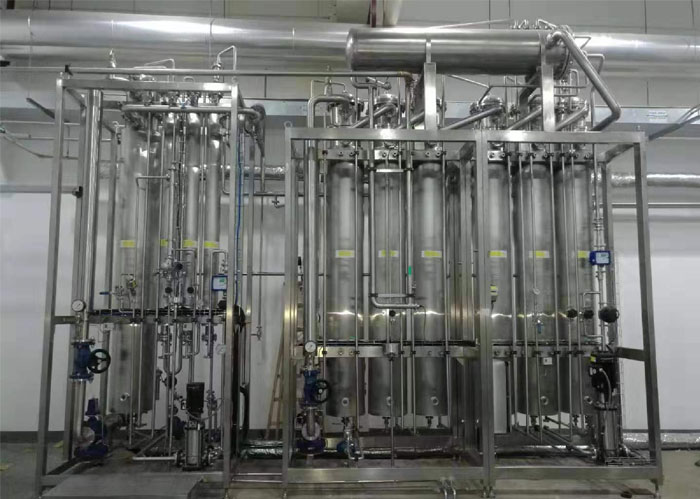 多效蒸餾水機(jī)是注射用水制備系統(tǒng)的關(guān)鍵設(shè)備。系列列管式多效蒸餾水機(jī)完全符合藥品生產(chǎn)規(guī)范GMP驗(yàn)證要求。以純化水為原料水,采用工業(yè)蒸汽加熱,經(jīng)過高溫高壓生產(chǎn)高質(zhì)量的注射用水,確保穩(wěn)定生產(chǎn)無熱原注射用水。本機(jī)生產(chǎn)的注射用水滿足中國(guó)藥典、美國(guó)藥典、歐洲藥典對(duì)注射用水的規(guī)范要求。設(shè)備采用三級(jí)分離工藝,保證注射用水內(nèi)毒素指標(biāo)不超過0.25EU/ml,具有連續(xù)去除不凝性氣體。