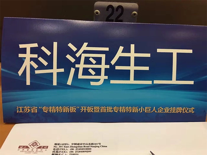 熱烈慶祝“科海生工”在江蘇省“專精特新板”首批“小巨人企業”成功掛牌
